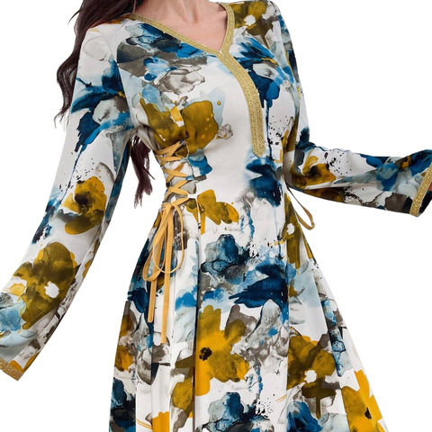 Arabe Moyen-Orient Imprimer Ramadan À Manches Longues Dames Robe Décontractée Vêtements Islamiques Abaya Femmes Musulmanes Robe