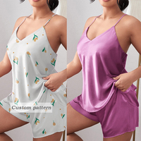 Pyjama en satin grande taille deux pièces sexy pour femme, vêtements de nuit sans manches, chemise de nuit pour femme