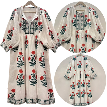 Vintage katı müslüman elbise kadın bahar Sundress 2023 Casual uzun kollu çiçek Abaya Maxi islam bez kadın elbise