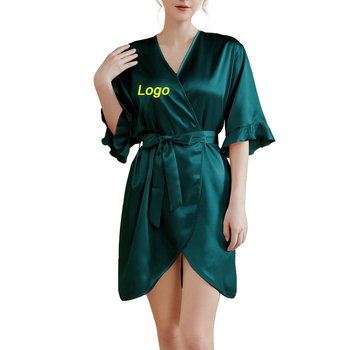 Özel moda moda katı ipek gecelik buz ipek ince seksi kadın bornoz gelin Robe pijama kadın pijama